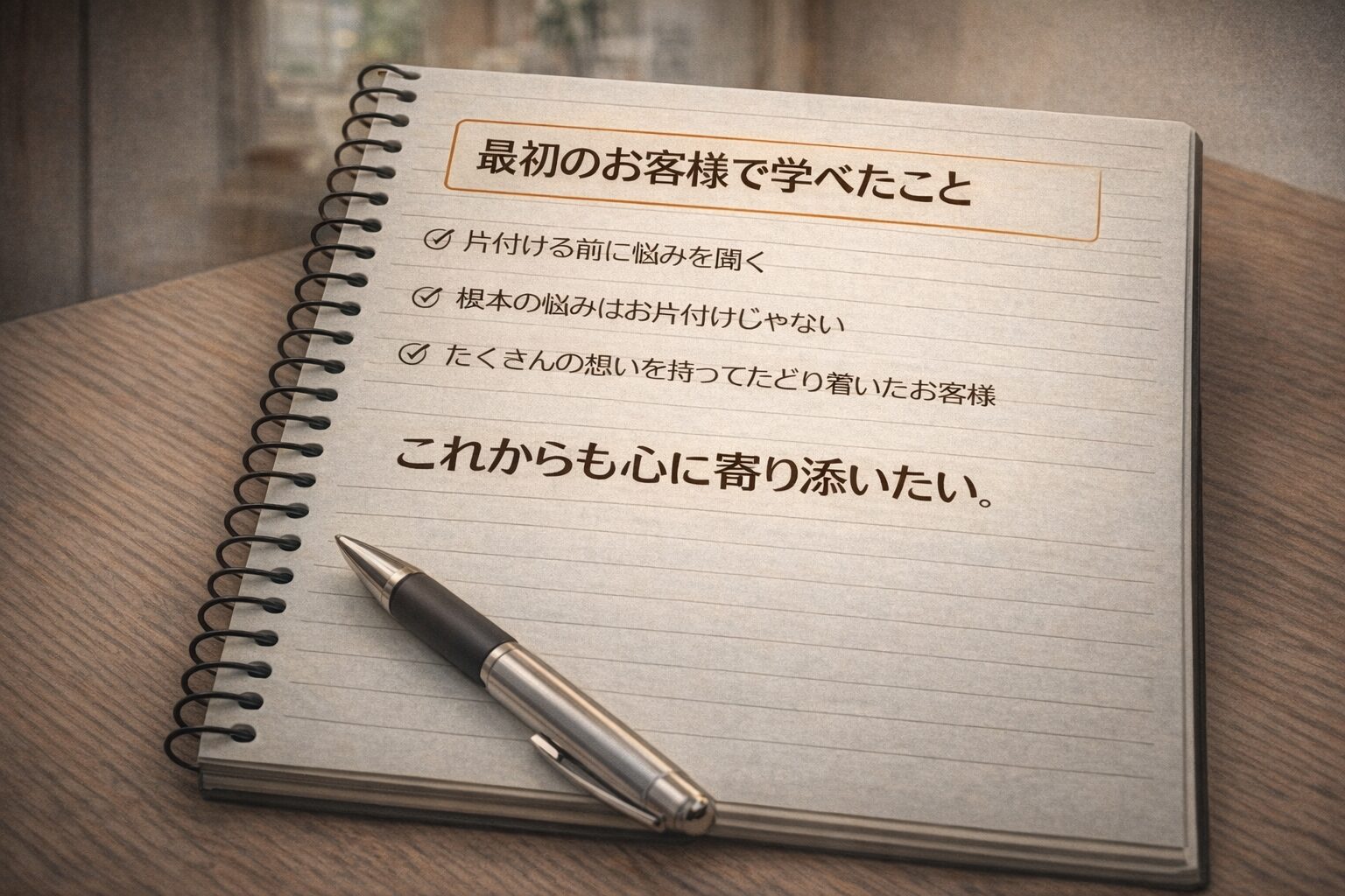 作業が終わる頃、お客様に疲れが見えた。私の経験不足だった。